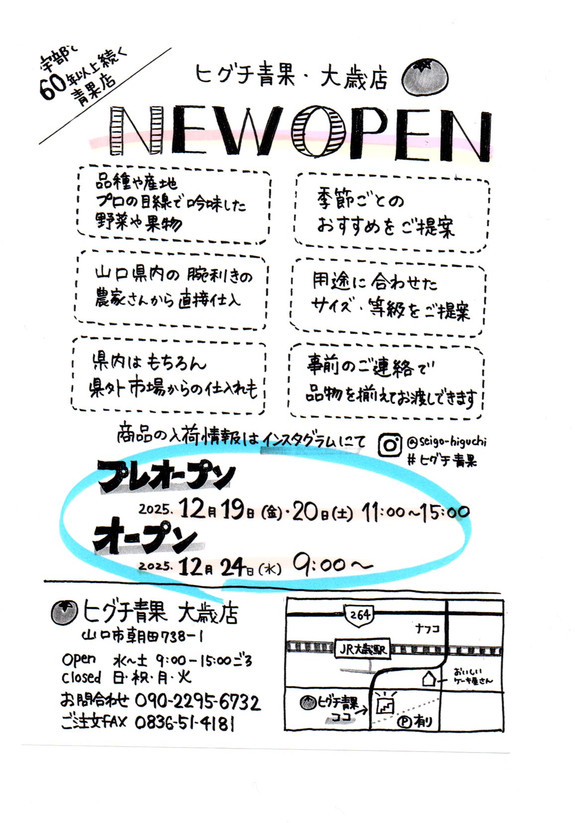 12/24(水)9:00-●OPEN 水~土 9:00-15:00ごろ